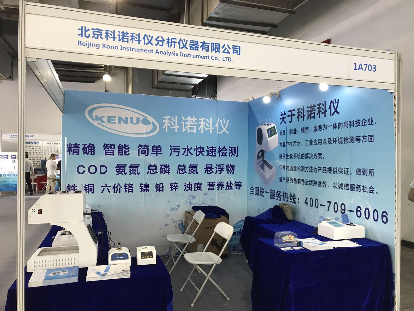 作為本次的參展商科諾科儀,科諾科儀作為國產水質檢測品牌商,展位號:1A703。本次展出的設備包括:COD回流恒溫消解儀,COD快速測定儀、總氮快速測定儀、氨氮快速測定儀、總磷快速測定儀、重金屬快速測定儀,多參數測定儀等水質檢測設備,前來參觀演示的客戶絡繹不絕,此次展會圓滿舉行。
